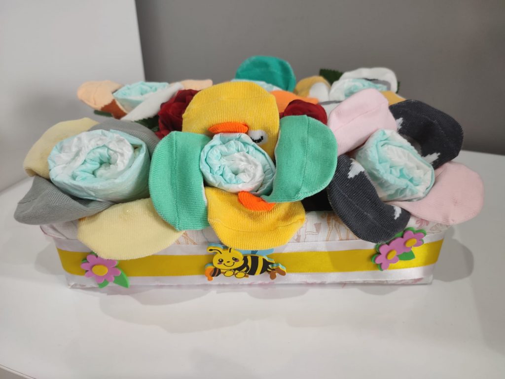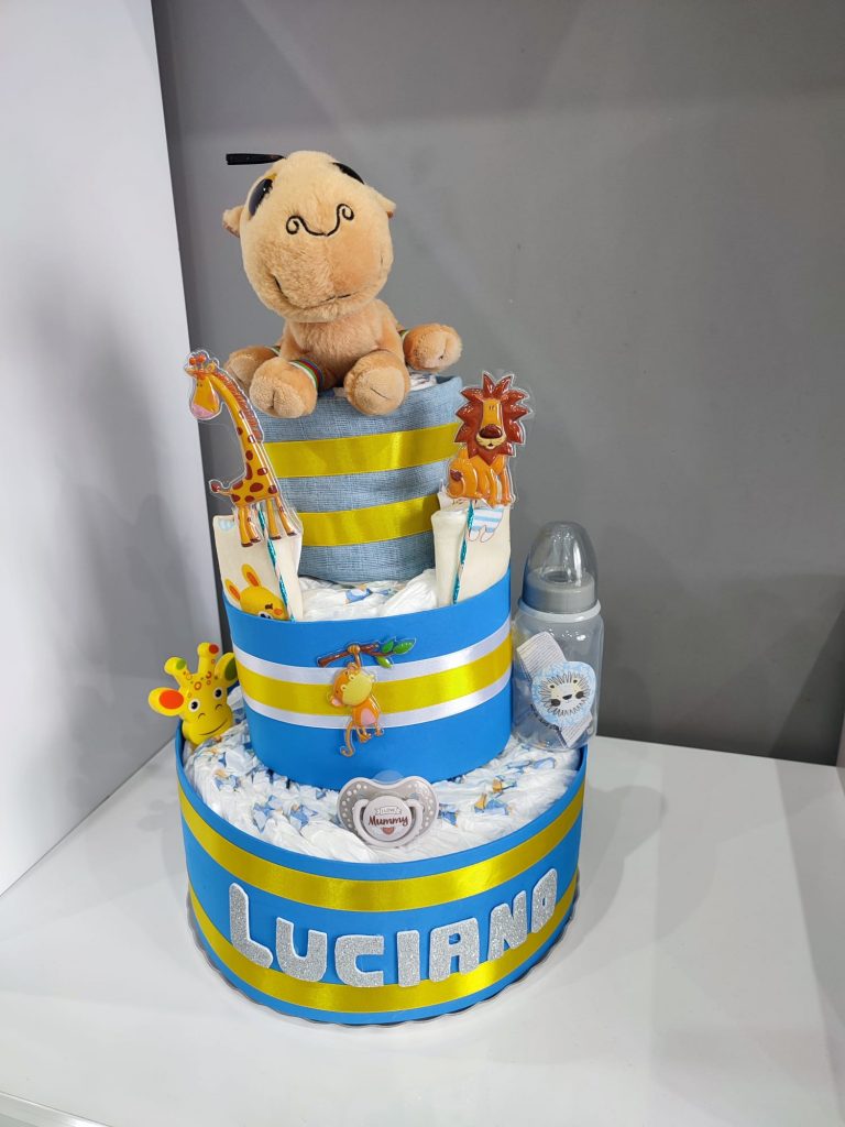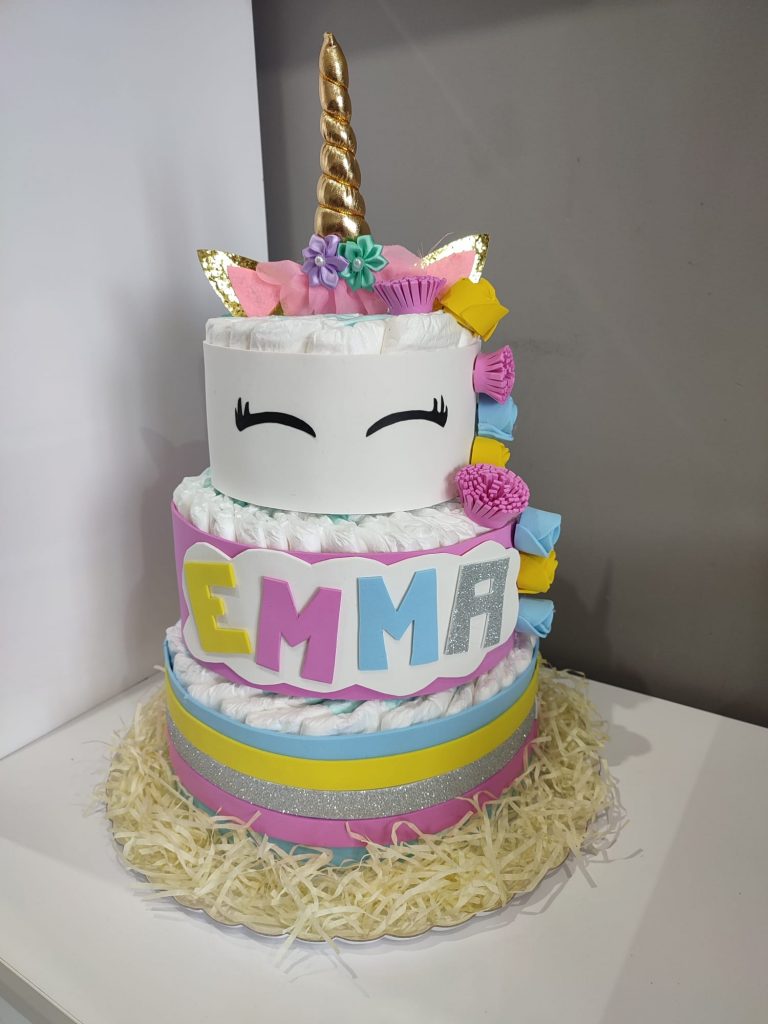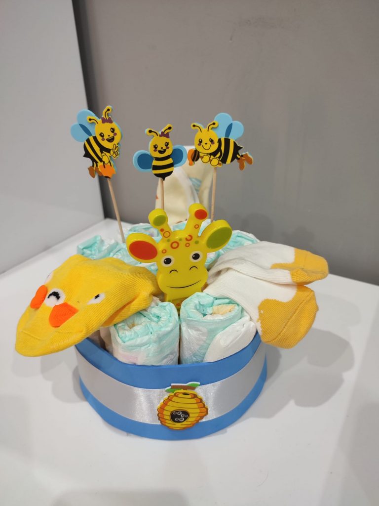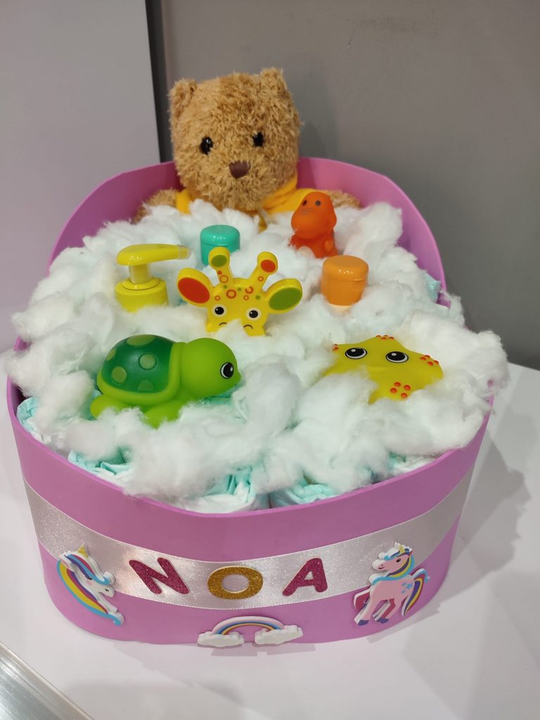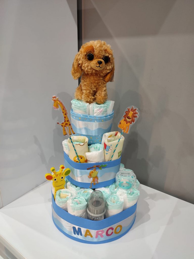 – Tartas de pañales (consultar precio). Si lo que vas a celebrar es una babyshower, no te preocupes por el regalo. Nosotros te hacemos tartas de pañales al gusto, del color, forma y tamaño que desees, con todo lo que quieras incluir en ella.